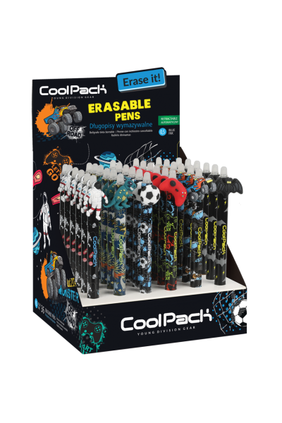 Kolekcja City Jungle to długopisy wymazywalne dla miłośników gier Zdecydowanie rozluźnią biurową atmosferę podczas sporządzania notatek ;) Unikalna formuła tuszu pozwala na wymazywanie, dzięki czemu możemy nawet wielokrotnie korygować ewentualne błędy w napisanym tekście. Display zawiera 36 długopisów wymazywalnych