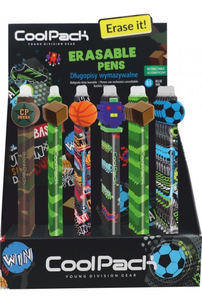 Kolekcja CoolPack Boys to zdecydowanie najbardziej odjechane długopisy wymazywalne dostępne na rynku. Zdecydowanie rozluźnią biurową atmosferę podczas sporządzania notatek ;) Unikalna formuła tuszu pozwala na wymazywanie, dzięki czemu możemy nawet wielokrotnie korygować ewentualne błędy w napisanym tekście. W jednym opakowaniu znajduje się sześć...