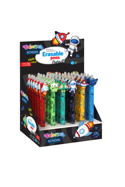 Kolekcja Space Life to długopisy wymazywalne z kolorowymi kosmicznymi motywami Zdecydowanie rozluźnią biurową atmosferę podczas sporządzania notatek ;) Unikalna formuła tuszu pozwala na wymazywanie, dzięki czemu możemy nawet wielokrotnie korygować ewentualne błędy w napisanym tekście. W jednym opakowaniu znajduje się sześć różnych kosmicznych wzorów: -...
