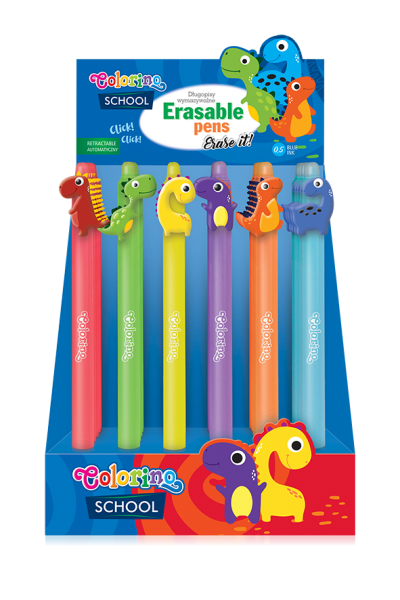 Kolekcja Dino to długopisy wymazywalne z sześcioma kolorowymi dinozaurami Zdecydowanie rozluźnią biurową atmosferę podczas sporządzania notatek ;) Unikalna formuła tuszu pozwala na wymazywanie, dzięki czemu możemy nawet wielokrotnie korygować ewentualne błędy w napisanym tekście. W jednym opakowaniu znajduje się sześć różnych kolorów dinusiów: czerwony,...
