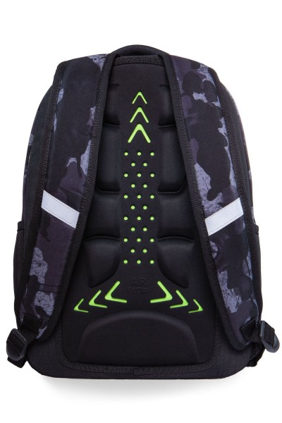 Dwie komory Plecy wykonane z pianki EVA Wyściełane szelki Wzmocniony spód Kieszeń na laptop Kieszonka na tablet Kieszeń z organizerem Zawieszka do kluczy Dwie przednie kieszonki zapinane na suwak Boczne kieszonki na bidon  46 x 34 x 17 cm Pojemność 27L 600D Poliester
