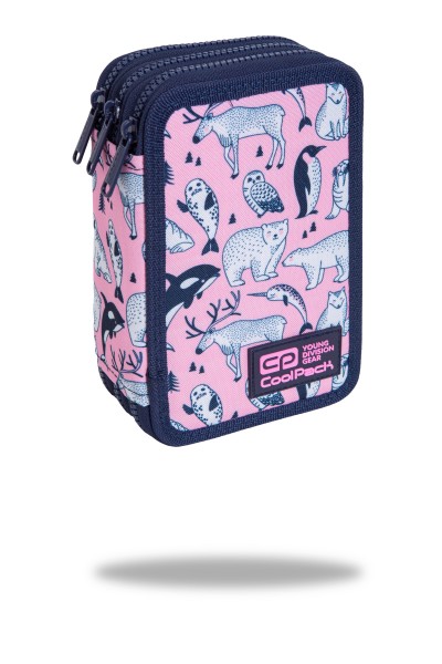 Piórnik potrójny z wyposażeniem Zawartość: - 18 kredek ołówkowych - 18 flamastrów - ołówek - 3 długopisy - linijka - ekierka - kątomierz - gumka do ścierania - temperówka  - nożyczki Wymiary: 19,5 x 12,5 x 6,5 cm