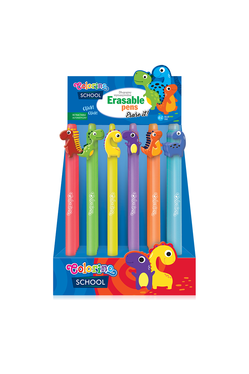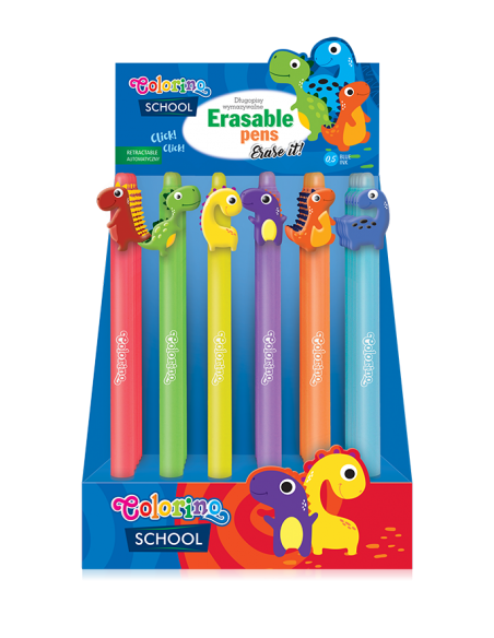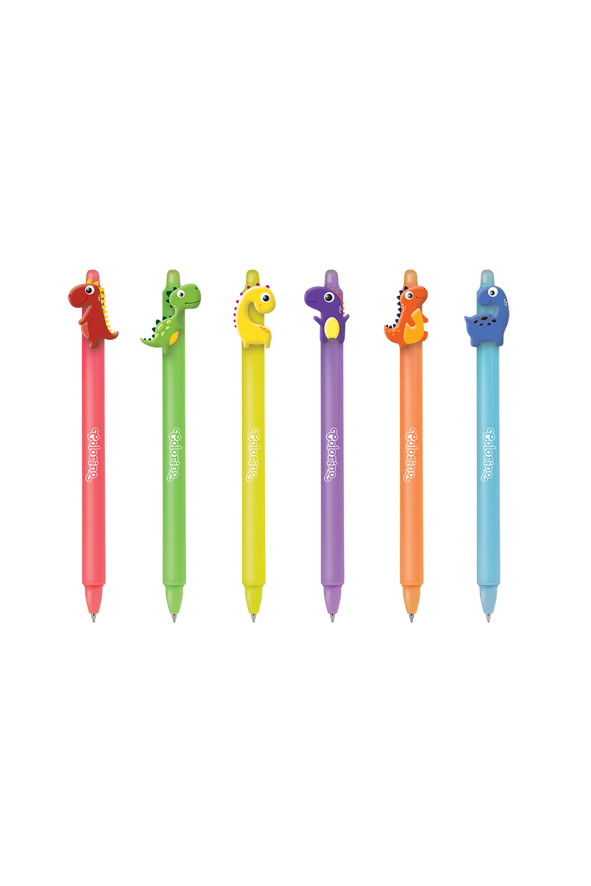 Kolekcja Dino to długopisy wymazywalne z sześcioma kolorowymi dinozaurami